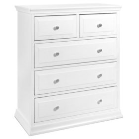 The evolur waverly tall chest is designed with exquisite gender neutral offering a simplistic design showcasing a lodge panel front, metal drawer pulls with straight lines surrounded by substantial molding. This victorian style dresser with feminine carvings, crystal and metal knobs, queen anne style feet, and ribbon and bow scrollwork will complete your child's enchanted bedroom. These include double dressers, tall chests, and more sets. This enchanting collection by evolur features a crib which converts to a toddler bed, day bed and a full size bed. Evolur waverly collection inspired by east coast autumn;